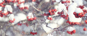 Vogelbeeren mit Schnee bedeckt, Glasbild Panorama