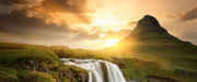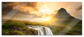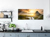 Wasserfall bei Sonnenuntergang, Glasbild Panorama