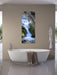 Wasserfall im grünen Wald B&W Detail, Glasbild Panorama