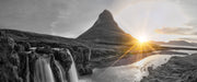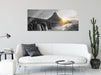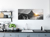 Wasserfall in Isalnd bei Sonnenuntergang B&W Detail, Glasbild Panorama
