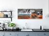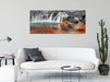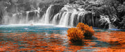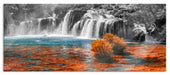 Wasserfälle im Herbst bei Sonnenuntergang B&W Detail, Glasbild Panorama