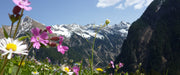 Wunderschöne Blumen Alpenwiese, Glasbild Panorama