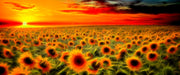 Wunderschönes Sonnenblumenfeld, Glasbild Panorama