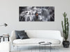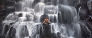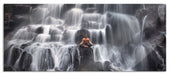 Yoga am Wasserfall in Bali, Glasbild Panorama