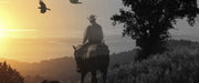 Ein Cowboy im Sonnenuntergang, Glasbild Panorama