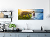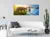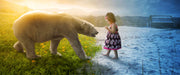 Eisbär im Sommer und Mädchen im Winter, Glasbild Panorama