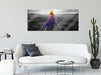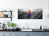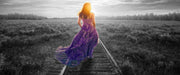 Frau auf Schienen bei Sonnenuntergang B&W Detail, Glasbild Panorama