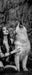 Indianische Frau und heulender Wolfshund, Monochrome, Glasbild Panorama