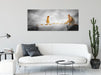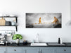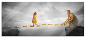 Kind läuft auf Papier über Abgrund B&W Detail, Glasbild Panorama