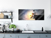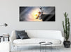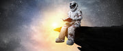 Lesender Astronaut auf Vorsprung vor Galaxie B&W Detail, Glasbild Panorama