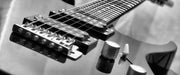 Black Guitar, Nahaufnahme Gitarre,, Glasbild Panorama
