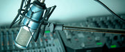 Mikrofon mit Musikanlagen, Glasbild Panorama