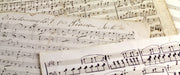 Stilvolle alte Notenblätter, Glasbild Panorama