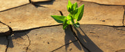 Keimling in ausgetrocknetem Boden, Glasbild Panorama
