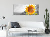 Nahaufnahme einer Sonnenblume, Glasbild Panorama