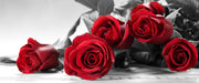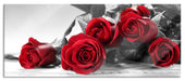 schöner Rosenstrauß auf Tisch, Glasbild Panorama