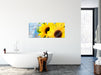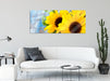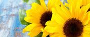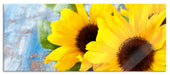 Sonnenblumen auf Holztisch, Glasbild Panorama