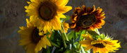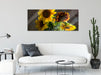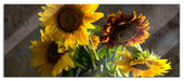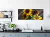 Sonnenblumen in edler Vase, Glasbild Panorama