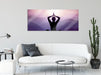 Meditierender Mann in den Bergen, Glasbild Panorama