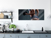 sportliche Frau mit Hanteln, Glasbild Panorama