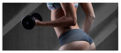 sportliche Frau mit Hanteln, Glasbild Panorama
