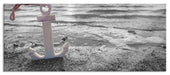 Anker am Ostseestrand im Sonnenuntergang B&W Detail, Glasbild Panorama