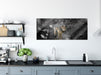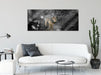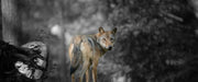 Ängstlicher Wolf im Wald B&W Detail, Glasbild Panorama