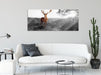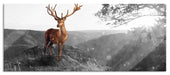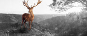 Anmutiger Hirsch bei Sonnenuntergang B&W Detail, Glasbild Panorama