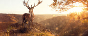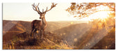 Anmutiger Hirsch bei Sonnenuntergang, Glasbild Panorama