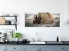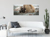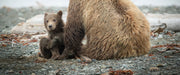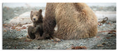 Bär mit Baby nach dem Baden, Glasbild Panorama
