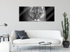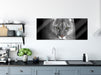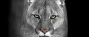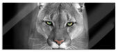 Bedrohlicher Puma Nahaufnahme B&W Detail, Glasbild Panorama