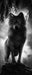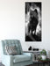 Böser Wolf bei Gewitter im Höhleneingang B&W Detail, Glasbild Panorama