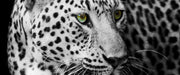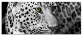 Dark Leopard mit grünen Augen, Glasbild Panorama