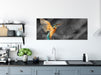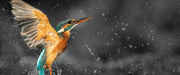 Eisvogel auf der Jagd nach Fischen B&W Detail, Glasbild Panorama