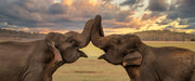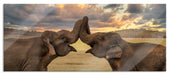 Elefanten Rüssel an Rüssel, Glasbild Panorama