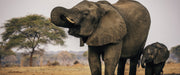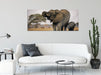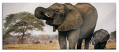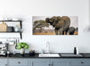 Elefantenkuh mit Jungem am Wasserloch, Glasbild Panorama