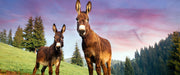 Esel auf Wiese in der Dämmerung, Glasbild Panorama