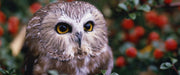 Eule im Vogelbeerenstrauch, Glasbild Panorama