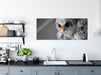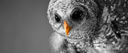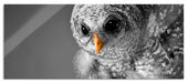 Eule mit Grille in ihren Krallen, Glasbild Panorama