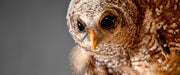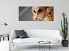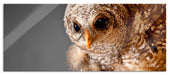 Eule mit Grille in ihren Krallen, Glasbild Panorama