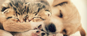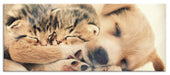 Hundewelpe mit kleinen Kätzchen, Glasbild Panorama