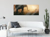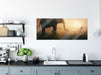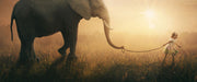 Kind und Elefant bei Sonnenuntergang, Glasbild Panorama