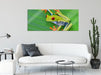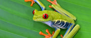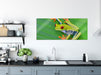 kleiner grüner Frosch auf Blatt, Glasbild Panorama