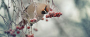 Kleiner Vogel im Vogelbeerbaum, Glasbild Panorama
