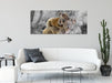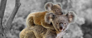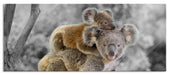 Koala Mutter mit Kind auf dem Rücken B&W Detail, Glasbild Panorama