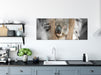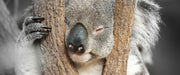 Koala schläft mit Kopf in Astgabel B&W Detail, Glasbild Panorama