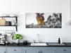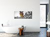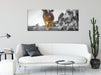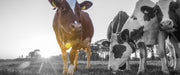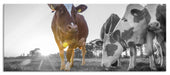 Kühe grasen auf Wiese bei Sonnenuntergang B&W Detail, Glasbild Panorama