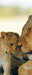 Löwenmutter schmusend mit Junges, Glasbild Panorama