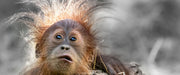 Lustiger Baby Orang-Utan mit Rinde B&W Detail, Glasbild Panorama