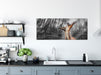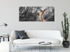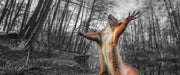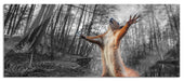 Lustiges Eichhörnchen steht im Wald B&W Detail, Glasbild Panorama